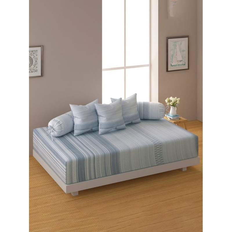 GR4670178605Swayam Pastel Vogue Geometric White & Blue Cotton Single Diwan Set