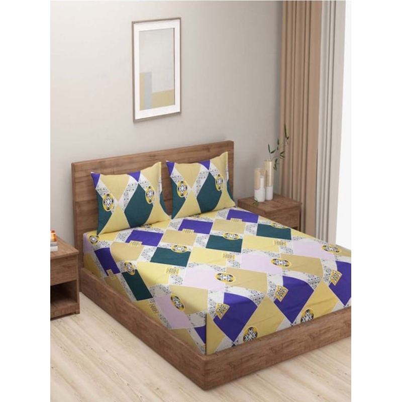 Be the first to review “Swayam Prakriti Geometric Multicolor 144 TC Microfibre Double Bedsheet with 2 Pillow Covers”