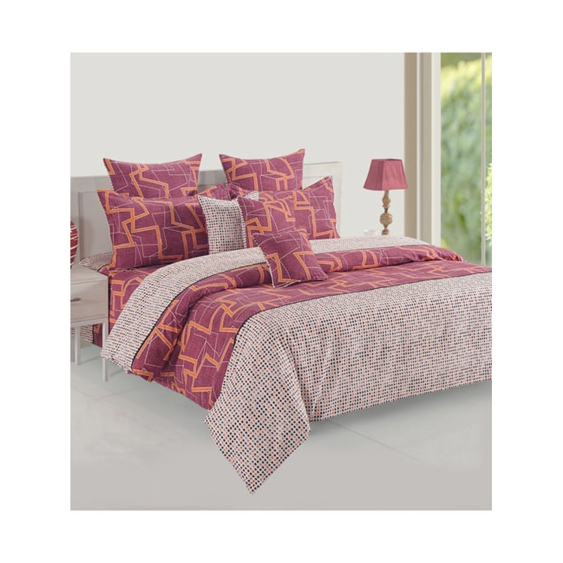 GR4670179420Swayam Red Cotton Abstract Double Bed Sheets 2 Pillow Covers