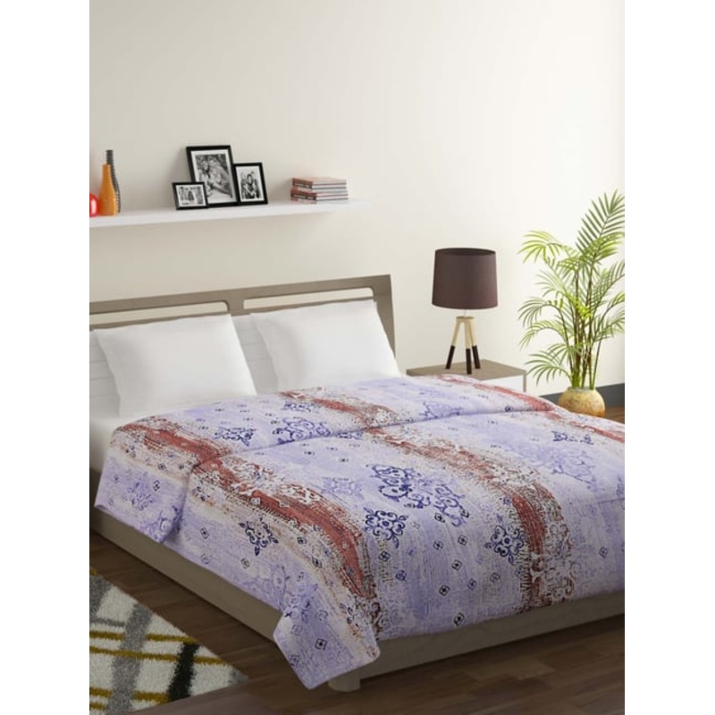 Add a refreshing zeal to your bedding with this double-sized comforter from Swayam's Veda collection. Crafted from 100 percent cotton with microfiber filling, this has 150 GSM, 144 TC and printed patterns that will envelop you in a blissful sleep. Each set