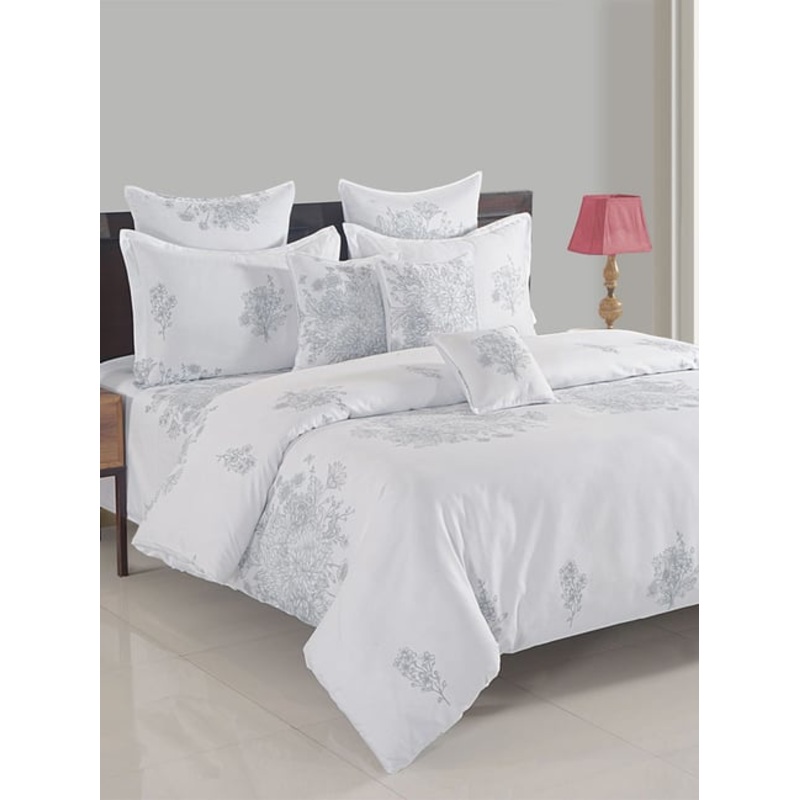 GR4670177949Swayam White Cotton Motif King Bed Sheets 2 Pillow Covers