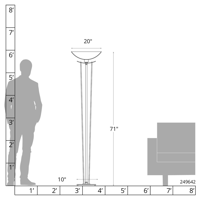 Taking a cue from the tall ornamental stands for candlesticks from long ago, our Torchiere rises to the height of elegance with two rods of steel escorting the steel tube up to the glass bowl.