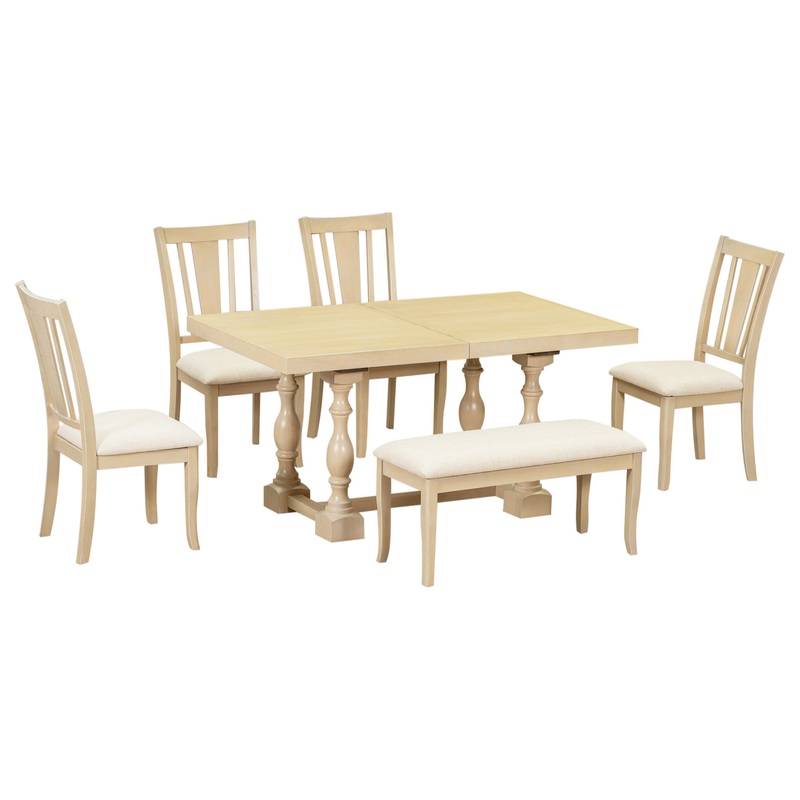 TATEUS Traditional 6-Piece 78inch Trestle Extendable Dining Table Set – Farmhouse – Dining Sets – by TATEUS LLC-SP000055AAA
