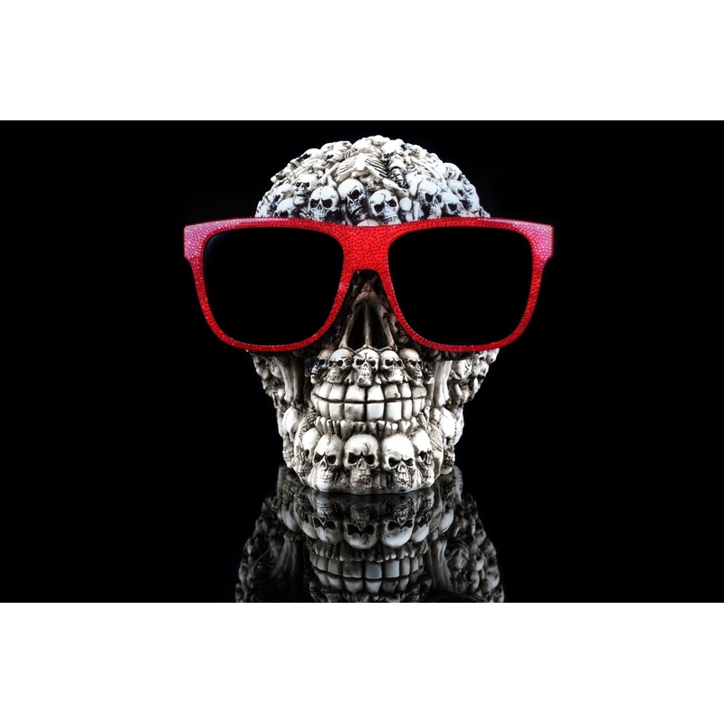 Tempered Glass With Foil & Rhinestones – Skulls On Skulls – Black60.0″W x 0.13″D x 40.0″H – 34.0 lb