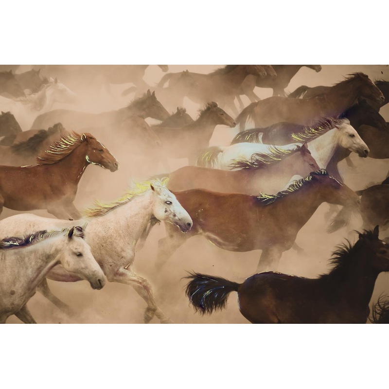 Tempered Glass With Foil – Wild Horses – Light Brown40.0″W x 0.13″D x 60.0″H – 34.0 lb