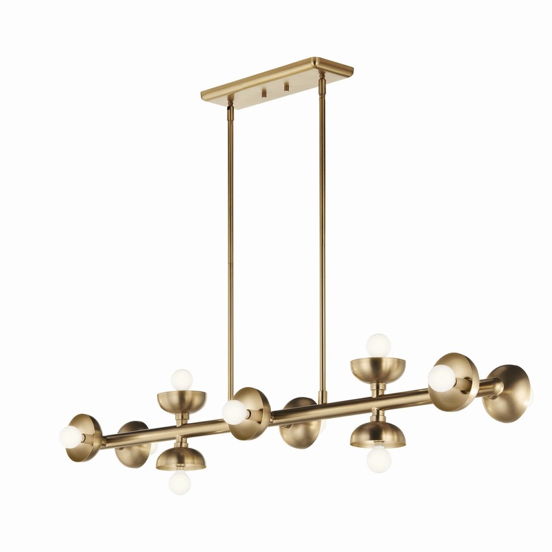 With its slim silhouette, the Palta linear chandelier elevates lighting to artistic expression. Its sleek profile in champagne bronze coordinates beautifully with various styles. Change the bulbs to change its look.