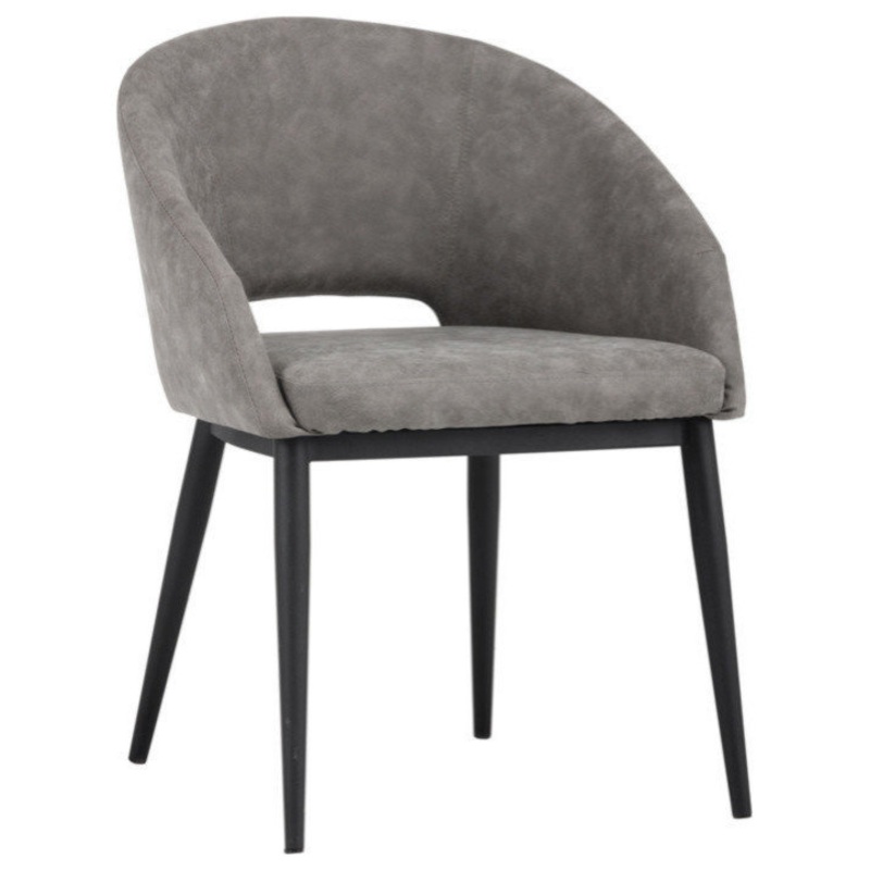 This compact barrel back chair from our Urban Unity collection is effortlessly cool. Stocked in antique grey faux leather with a black powder coated steel frame, or onyx faux leather with an antique brass steel frame. Suitable for dining, office and small