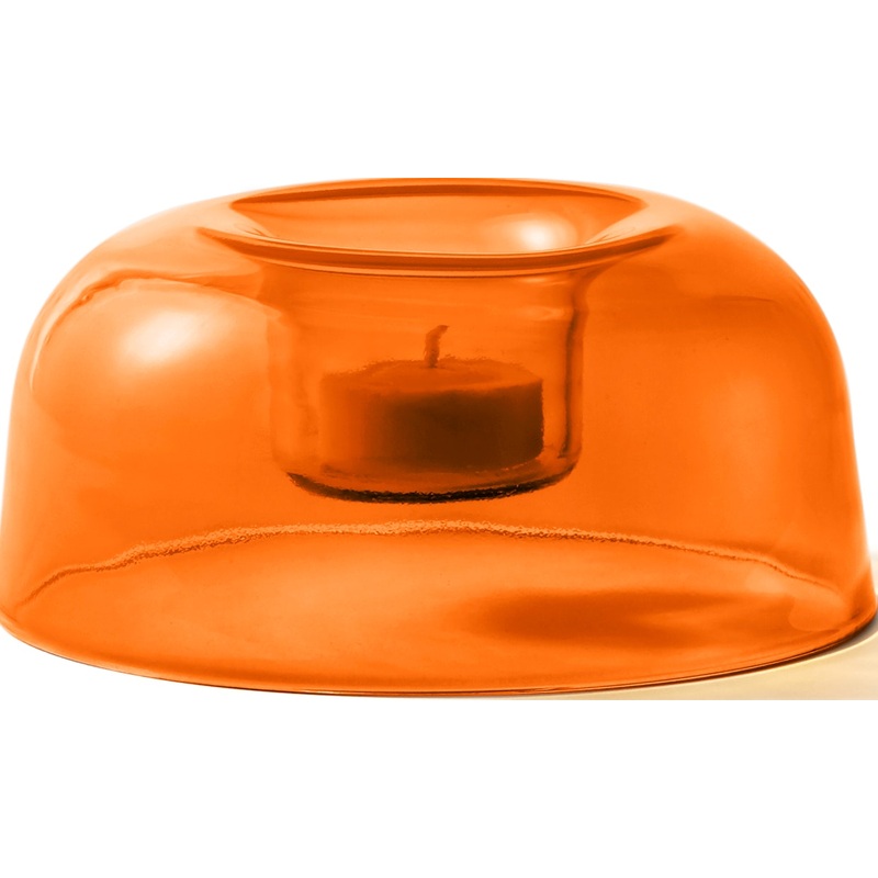 A sculptural postmodern form for your dining table, The Light Tealight (2019) is pleasing to look at with or without a lit candle. Individually mouth-blown to create this fluid shape, no two Lights are the same, and the slight irregularities of the glass add to the illusion of a lit flame floating in mid-air. The warm colors of the flame mix with the color of the glass to create a warm and inviting atmosphere. The Light was designed by Lyndon Neri and Rossana Hu, the duo behind the design studio Neri & Hu. Made in Italy.