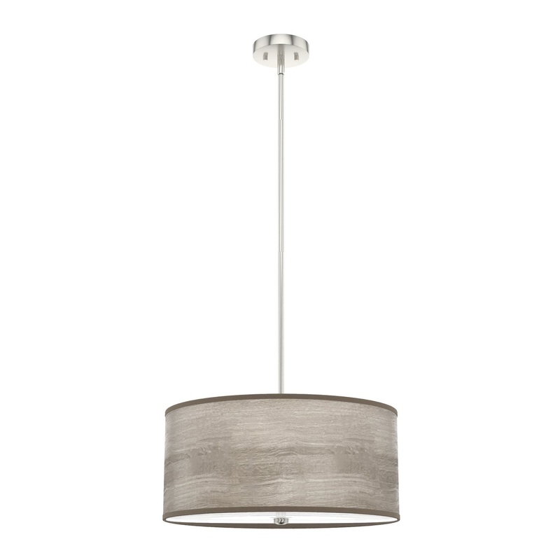 Specifications for this Hunter Three Light PendantThe Solhaven pendant is a picture of an updated mid-century style. The drum pendant light with wood-inspired shade is perfect in your office or your dining room. In any space, the Solhaven fixture sets a to