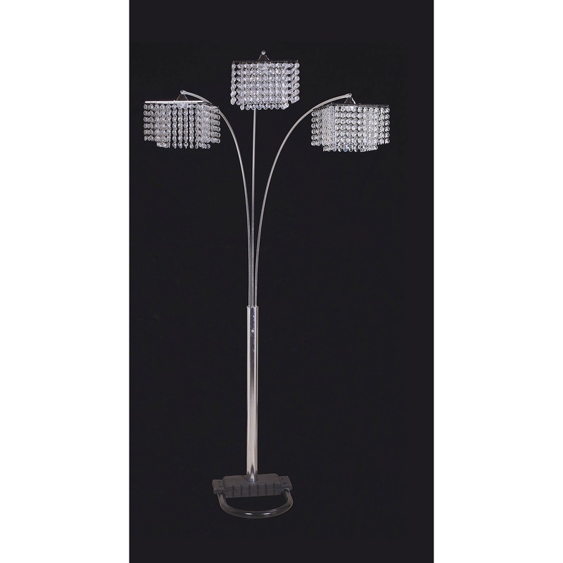 Tina White/Chrome Arch Lamp, 45"L X 17"W X 84"H, 34.63lbs. This beautiful arch lamp features three lights with diamond-cut faux crystals and flexible arms for a classy look. Features:Traditional StyleMetalHeight: 84"Max Watt: 40w or 13w CFLShade Size: 10"