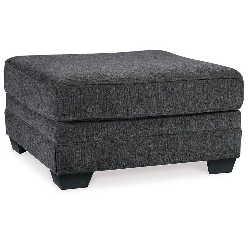 The ultimate sectional centerpiece, this oversized ottoman is big on cool, contemporary style and long on comfort. Plushly upholstered in a slate gray fabric, this ottoman is so generously scaled, you can top it with a serving tray and still have plenty of room to kick up your heels.