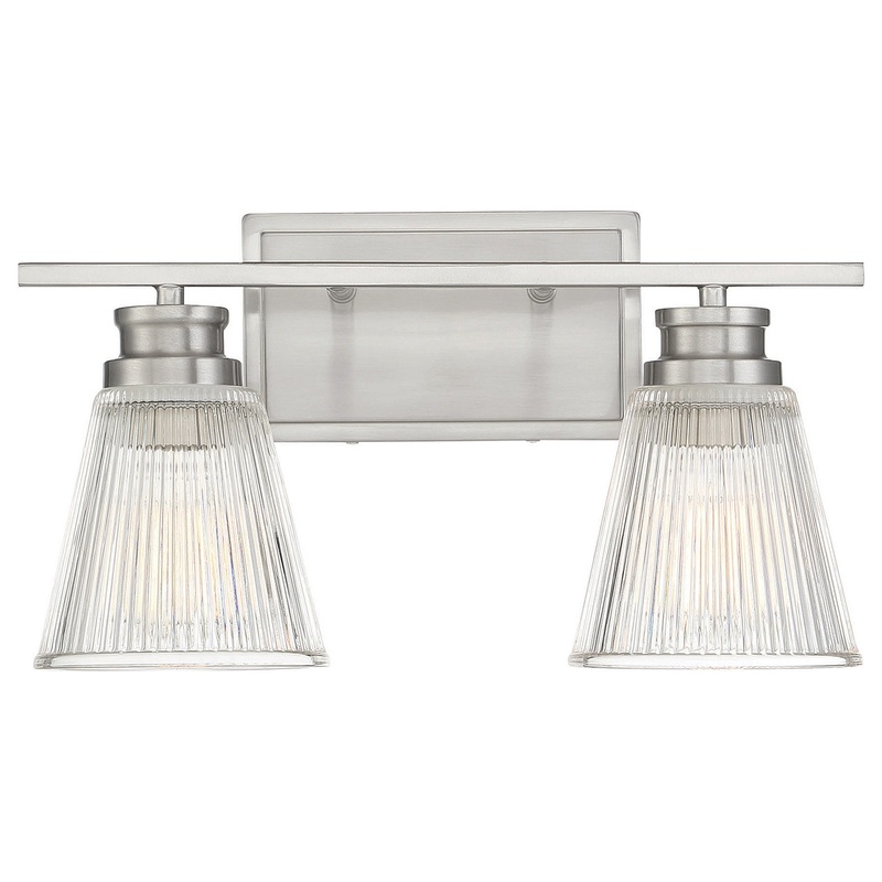 This 2-Light Bathroom Vanity Light From Trade Winds Lighting Comes In A Brushed Nickel Finish. It Measures 8″ High X 16″ Long X 16″ Wide. This Light Uses 2 Standard Bulb(S). This light requires 2 , 60W Watt Bulbs (Not Included) UL Certified.