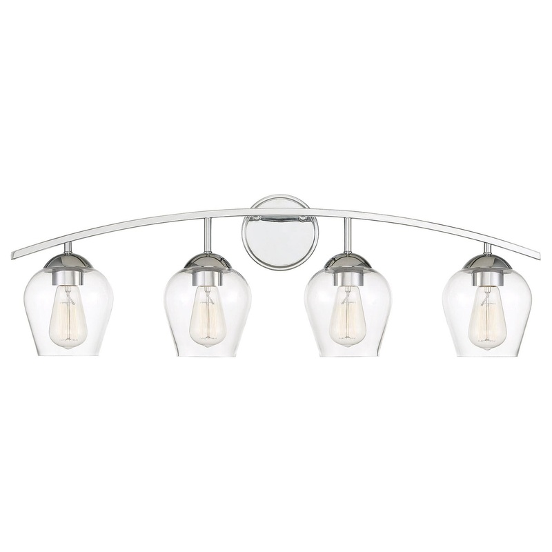 This 4-Light Bathroom Vanity Light From Trade Winds Lighting Comes In A Chrome Finish. It Measures 10" High X 32" Long X 32" Wide. This Light Uses 4 Standard Bulb(S). This light requires 4 , 60W Watt Bulbs (Not Included) UL Certified. Product ID165723774Ma