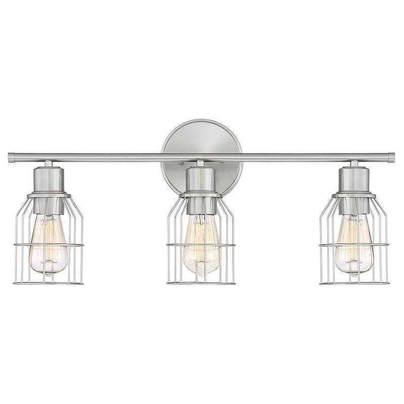 This 3-Light Bathroom Vanity Light From Trade Winds Lighting Comes In A Brushed Nickel Finish. It Measures 12" High X 24" Long X 24" Wide. This Light Uses 3 Standard Bulb(S). This light requires 3 , 60W Watt Bulbs (Not Included) UL Certified. Product ID175