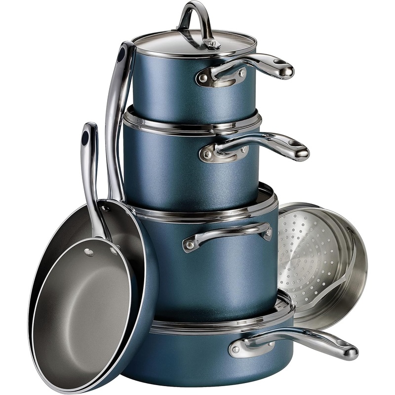 Tramontina Cookware Set Nonstick 11-Piece Blue, 80143/031DS Tramontinas 11-Piece Nonstick Cookware Set offers versatile pots and pans for cooking meals of every size. Featuring an attractive metallic colored exterior, this durable set is constructed of hea
