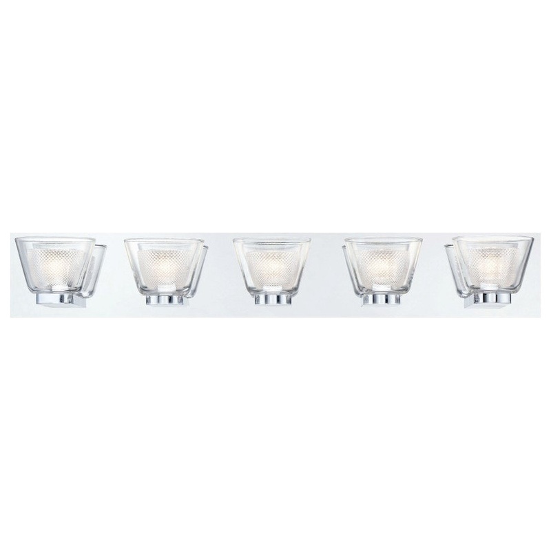 Transitional 5-Light LED Bathbar with Frosted/clear Glass-5.25 x 31.5 inches-Vanity & Bath . Mars Road 5-Light LED Bathbar Chrome Finish with LED Light enclosed in a frosted inner and clear outer glass with chrome frame. Product Type: BathbarFixture Style: