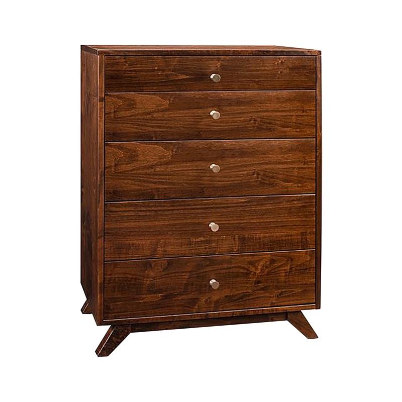 TheTribeca 5 DrawerHighboycomes in your choice of 41 wood stains available on Buxton Cherry, Smooth Maple, Serene Oak, Brushwork Maple and Heritage Maple. This product features39different hardware options to suit any style and space.