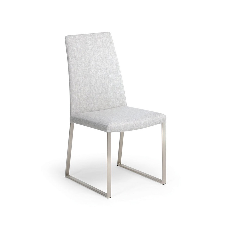 The Trica Curvo Chair's tall and thin profile creates a unique and distinctive look for any dining room. The sled base is available in several metal finishes and the removable slipcover is available in a variety of upholstery options. Designed and built wi