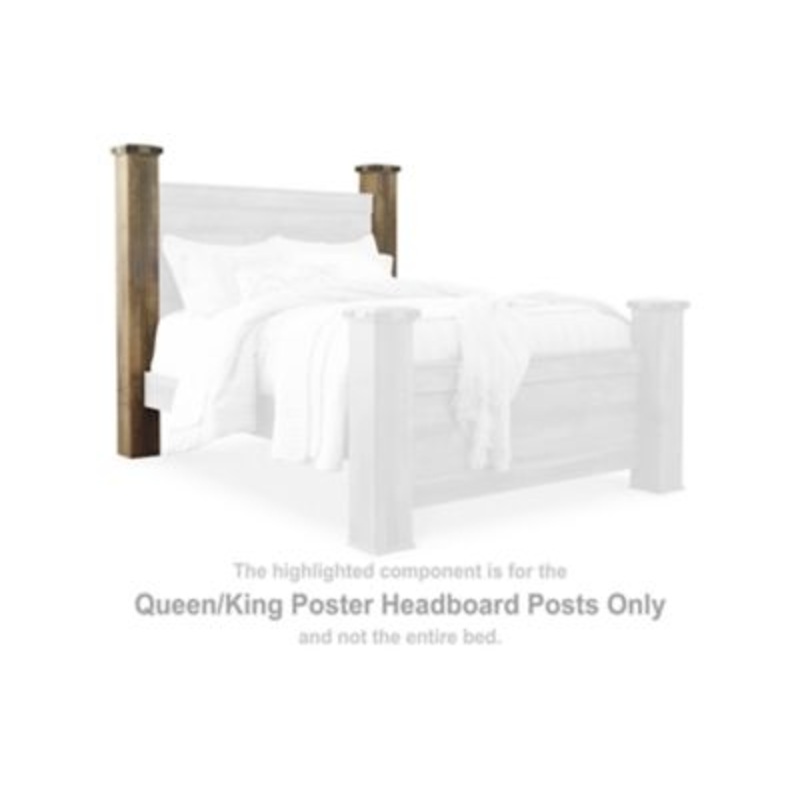 This set of queen/king poster headboard posts is made with engineered wood (MDF/particleboard/plywood) and decorative laminate. Pairs with other items in the series to make a bed kit.