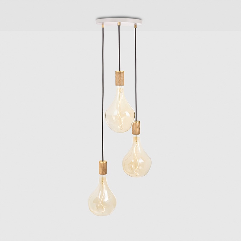 FEU154086765779Triple Pendant in Oak + Voronoi II - White Canopy