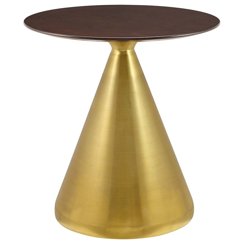 Connect with family and friends over good food and conversation with the Tupelo 28″ Dining Table. Inspired by modern style and mid-century influence, this pedestal table reflects an organic shape and is perfect for entertaining or everyday dining. This dining table rests on a conical polished gold metal pedestal base and features a 28″ tabletop crafted with MDF and wood grain veneer. Non-marking ring to protect flooring. Assembly required.