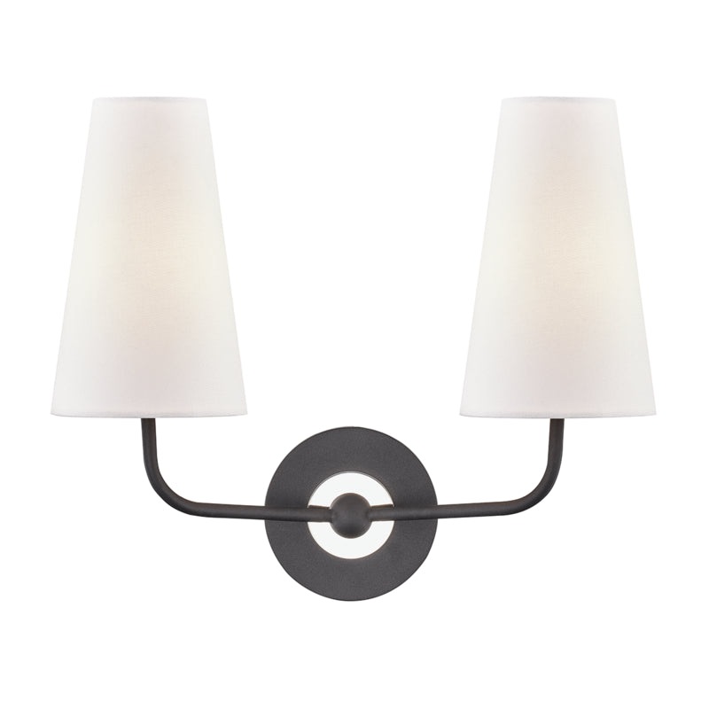 Specifications for this Mitzi Two Light Wall SconceWidth: 15.75"Height: 13.50"Extension: 7.75"Wire: 7"Canopy: 4.625"Light InformationLight Bulbs and/or Light Source are not included.Unsure what bulbs to add to your order? Email us [email protected]