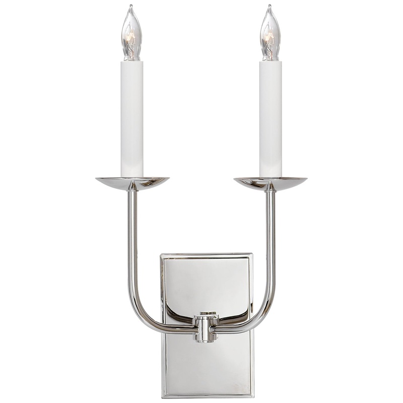 DimensionsWidth: 10.00"Height: 18.00"Extension: 7.00"Weight: 3.00 lbCanopy: 4" x 6" RectangleTT Double Sconce in Polished NickelLight InformationLight Bulbs and/or Light Source are not included.Unsure what bulbs to add to your order? Email us hello@lightin