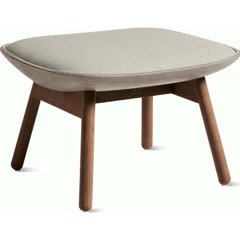 The Uchiwa Ottoman (2014) is a soft, open design, drawing inspiration for its profile from the traditional Japanese hand fan. Paired with its matching lounge chair, its ideal for extended lounging. Its upholstered in a mix of fabric and full-grain leather