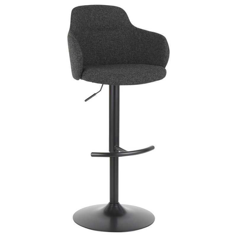 The industrial charm of the Boyne Barstool by LumiSource combines comfort with stylish appeal. An upholstered bucket style seat is accented by a black metal adjustable base. Available in a variety of colors. -Seat To Floor: 24-33" -Seat Depth: 15.5" -Insid