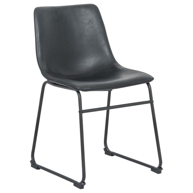 Sure, dining chairs provide the perfect perch when you’re settling in to a meal, but they also go a long way toward helping round out the style set by your dining table and giving you an on-trend space. This chair, for example, is crafted from a black-finished metal base with sled legs and a bucket seat, it’s ideal for an on-trend contemporary look. And since the seat features faux leather upholstery, it’s ideal for a padded touch during long chats over dinner. This chair also features glides on its feet to help protect your against scratched floors.
