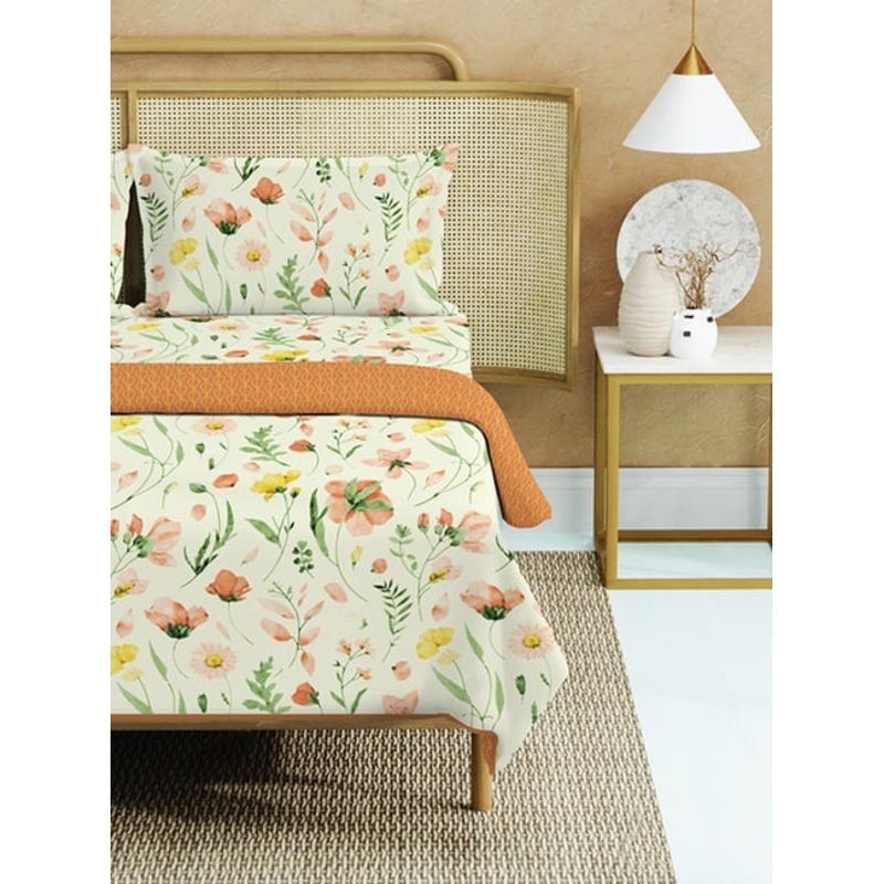 Transform your bedroom into a cozy retreat with the Urban Space 100 percent cotton bedding set specially crafted for year-round comfort and style. This 4-piece set includes a lightweight AC comforter,duvet one double-size bedsheet and two matching pillow covers all made from 100 percent pure cotton for breathable softness and durability. Generously sized to fit standard double beds. The comforter offers full coverage without compromising on lightweight comfort. Light yet cozy the comforter is designed for air-conditioned rooms or mild weather ensuring restful sleep every night.