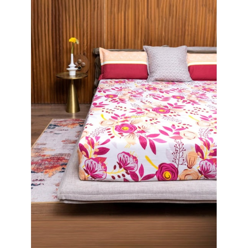 GR4670180823Urban Space Cotton Earth Pink 144 TC Pink Double Bed Sheet with 2 Pillow Covers