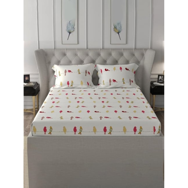 GR4670179208Urban Space Cotton Humming Bird Red 144 TC Red Double Bed Sheet with 2 Pillow Covers