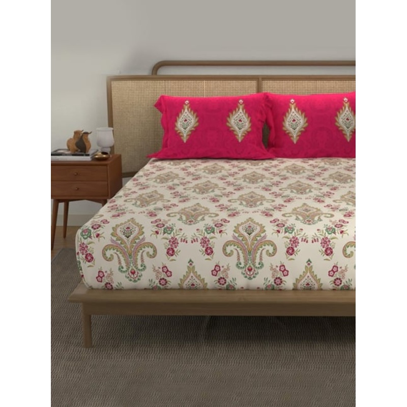 Be the first to review “Urban Space Cotton Motif Red 144 TC Red Double Bed Sheet with 2 Pillow Covers”