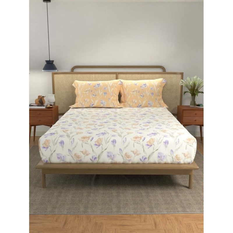 Urban Space Divine Autumn Peach Cotton 144 TC Bedsheet With 2 Pillow Cover