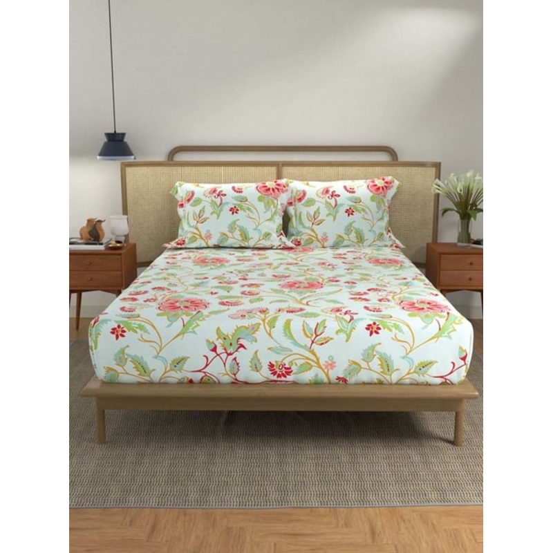 Urban Space Divine Monsoon Sky Blue Cotton 144 TC Bedsheet With 2 Pillow Cover