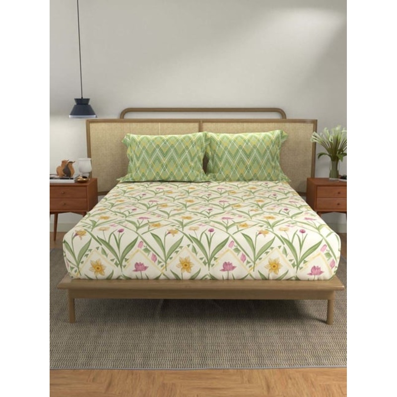 Lighten up your bedroom with this set of 1 bedsheet and 2 pillow covers from Urban Space. It is crafted from premium-quality cotton. With a thread count of 144 TC, it ensures endearing comfort to your tired nerves.