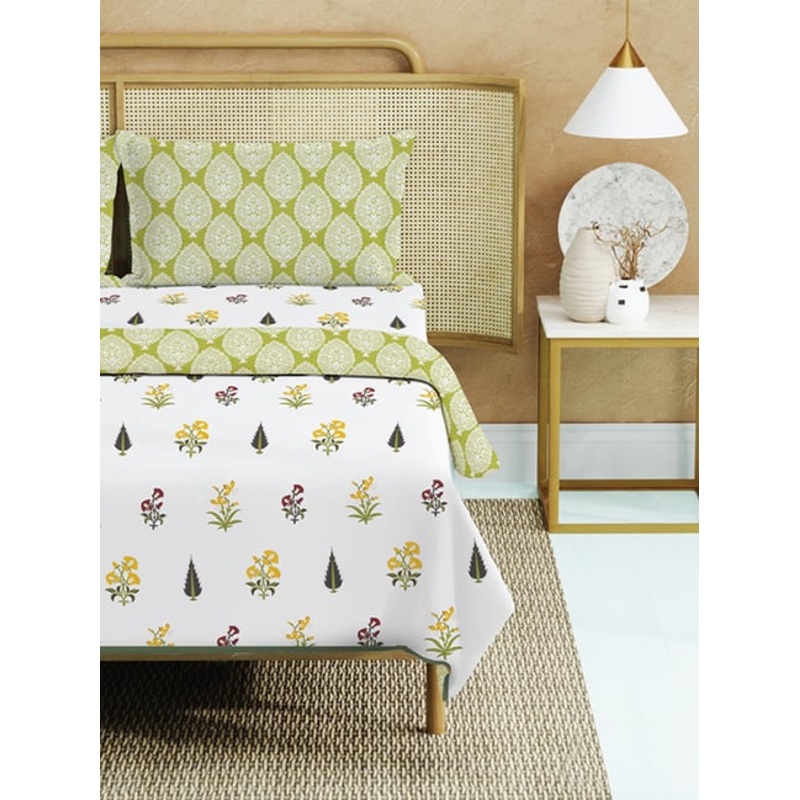 Transform your bedroom into a cozy retreat with the Urban Space 100 percent cotton bedding set specially crafted for year-round comfort and style. This 4-piece set includes a lightweight AC comforter,duvet one double-size bedsheet and two matching pillow c