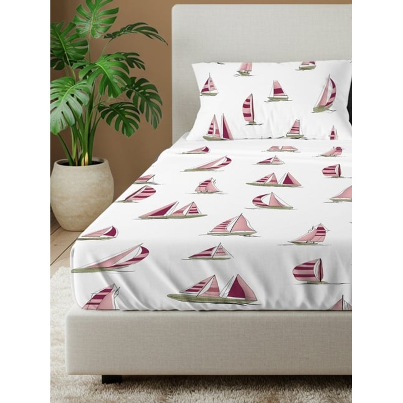 Urban Space Maroon Cotton Printed 144 TC Double Flat Bedsheet with 2 Pillow Covers