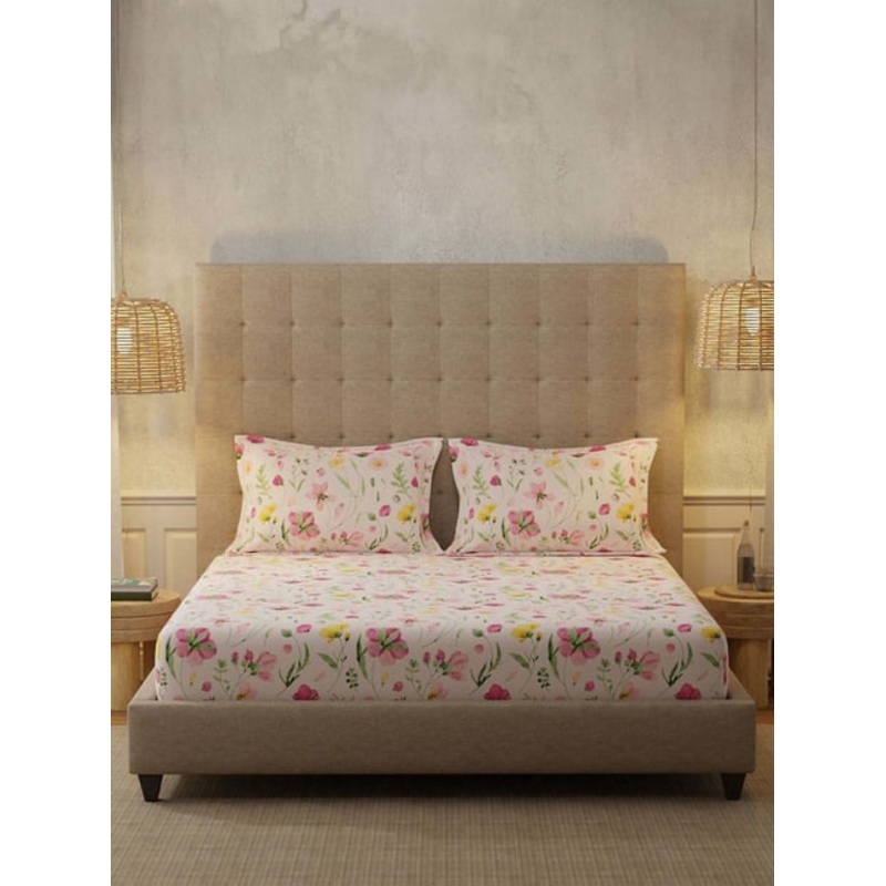 Urban Space New Serene Meadows Rose Pink Cotton 200 TC Bedsheet With 2 Pillow Cover