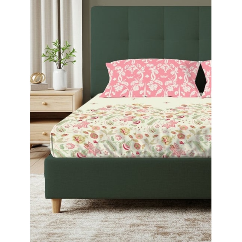 Be the first to review “Urban Space Peach Pink Cotton Printed 200 TC Double Flat Bedsheet with 2 Pillow Covers”