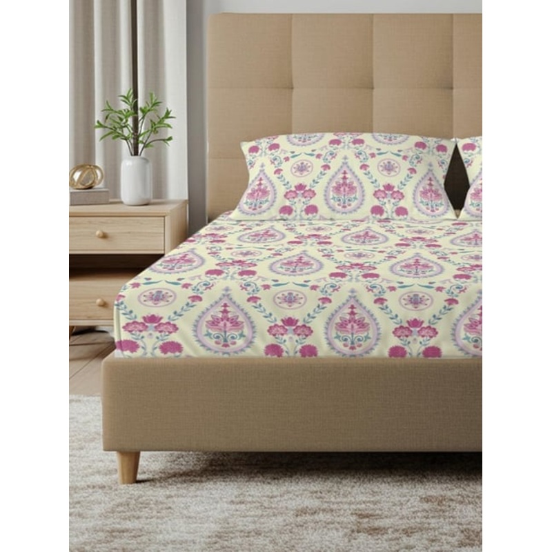 Be the first to review “Urban Space Pink Cotton Printed 200 TC Double Flat Bedsheet with 2 Pillow Covers”
