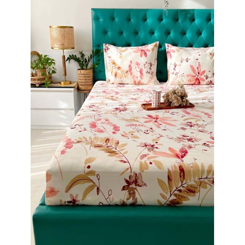 GR4670178628Urban Space Pink & Peach Cotton 200 TC Double Bedsheet with 2 Pillow Covers