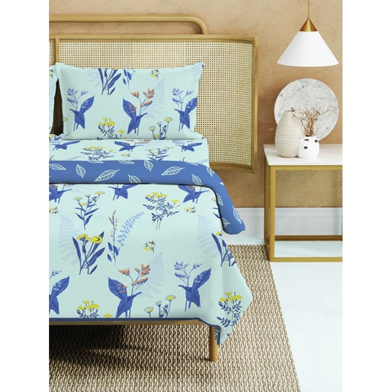 Transform your bedroom into a cozy retreat with the Urban Space 100 percent cotton bedding set specially crafted for year-round comfort and style. This 4-piece set includes a lightweight AC comforter,duvet one double-size bedsheet and two matching pillow c