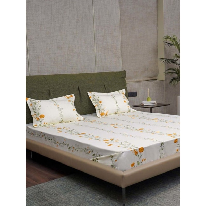 Urban Space Yellow & White Cotton 200 TC Printed Single Bedsheet with 1 Pillow Cover
