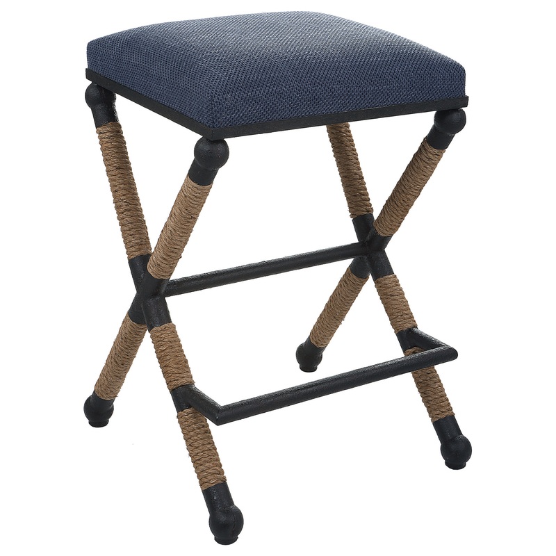 Rustic Iron Frame With A Nautical Touch, Wrapped In Natural Fiber Rope Accents. Cushioned Top Is A Cotton Blend In A Rich Textured Navy With Performance Treatment. Seat Height Is 28". Model # (MPN)23710Product ID191406155Manufactured ByUttermostSold ByDesi