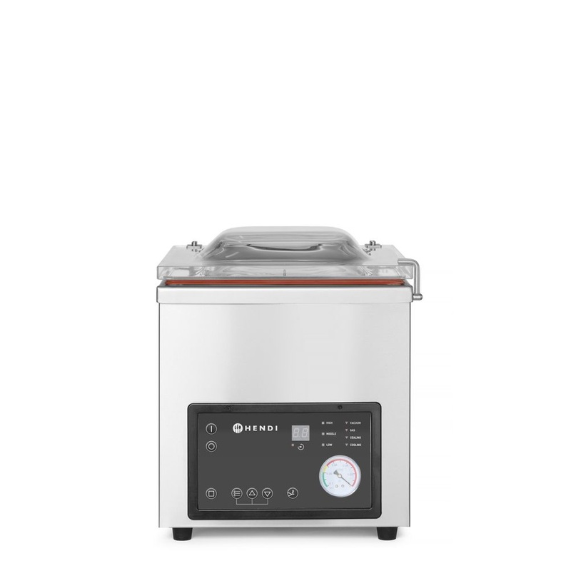Zur sicheren Verpackung von Lebensmitteln im professionellen Gastronomiebereich entwickelt. Besonders langlebig - Gehuse und Kammer aus hochwertigem Edelstahl 304 gefertigt. Die Wlbung im Deckel ermglichen auch das Vakuumieren von greren Lebensmitteln. Der
