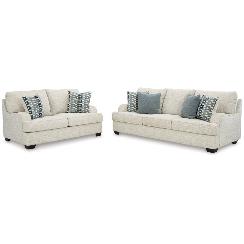 This seating package has the corner on casual contemporary style and everyday comfort. Chic and subtly innovative, its crosshatched chenille upholstery is a forward-thinking take on fashionable neutrals. The sleek frames get a soft, streamlined touch with sloping track arms.
