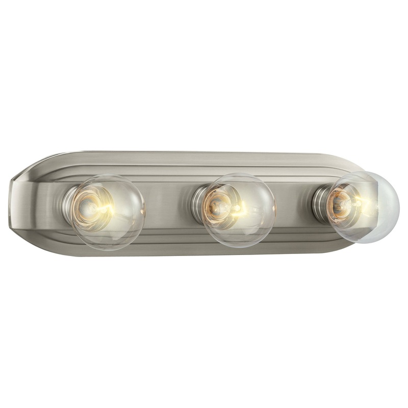 -Bulbs not included -Number of bulbs: 3 -Bulb type: Incandescent -UL/CUL -Wattage: 100 -Hardwire -Some assembly requiredModel # (MPN)6613-BNProduct ID147402602Manufactured ByDesigners FountainSold ByHouzzSize/WeightW 18" / D 2.5" / H 4.5" / 1.7 lb.ColorBru
