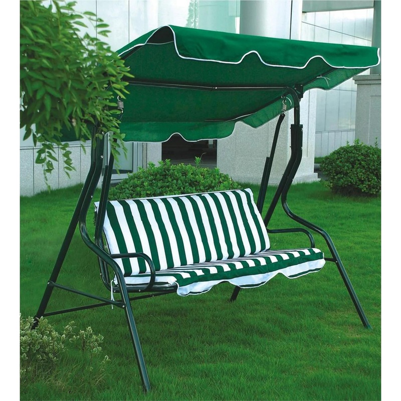 Vebreda 3-Seat Patio Outdoor Porch Swing Glider Chair with Canopy, Green Our canopy which is durable and waterproof can be freely adjusted angles to avoid UV light and rainfall. Info-Specification: Material: Steel frame & waterproof Polyester fabric Item w